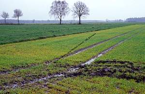 Fahrspur im nassem Acker