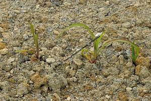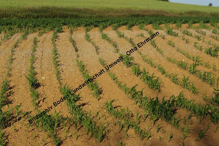 Mais auf hochgepfluegten Muschelkalk Unterboden 55