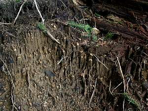 Erosionsrinne Wurzeln freigelegt