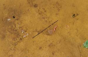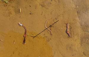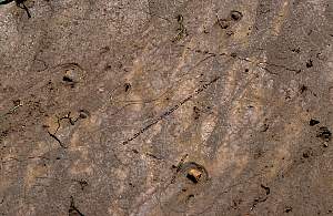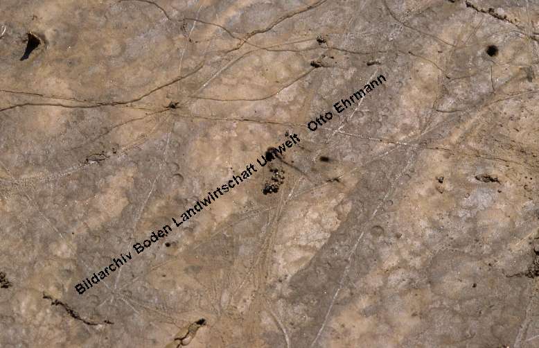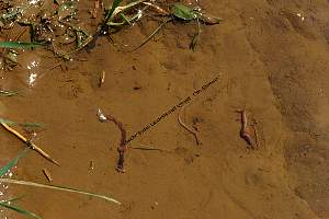 Regenwurmspuren im Schlamm: