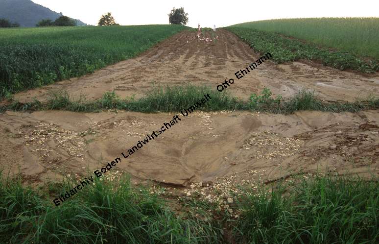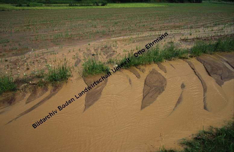 Wasser schwemmt Boden weg: