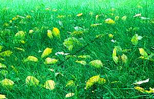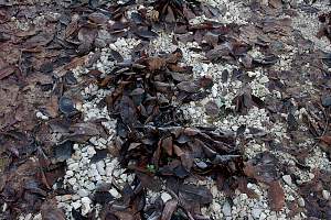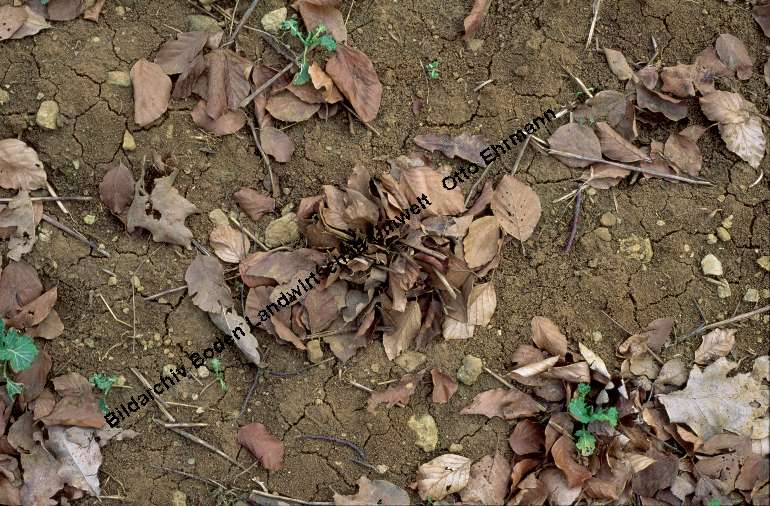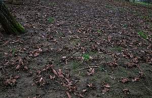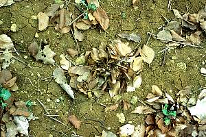 Walnussblätter von Regenwürmern reingezogen