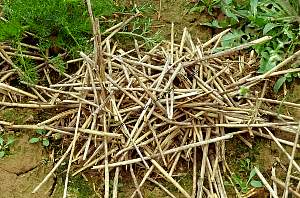 Regenwürmer ziehen Rebenreisig zusammen