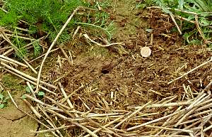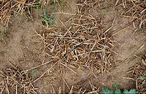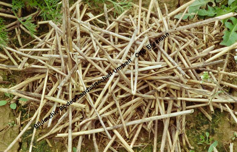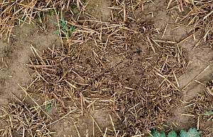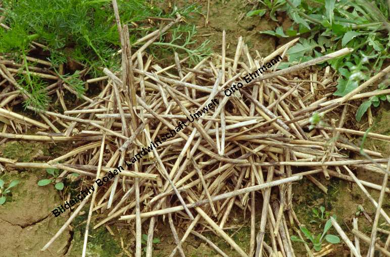 Regenwürmer haben Stroh zusammengezogen