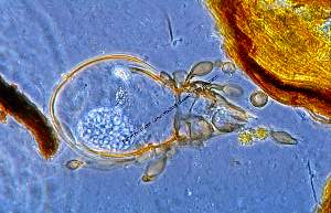 Hornmilbenlosungen mit Mykorhizzahyphen