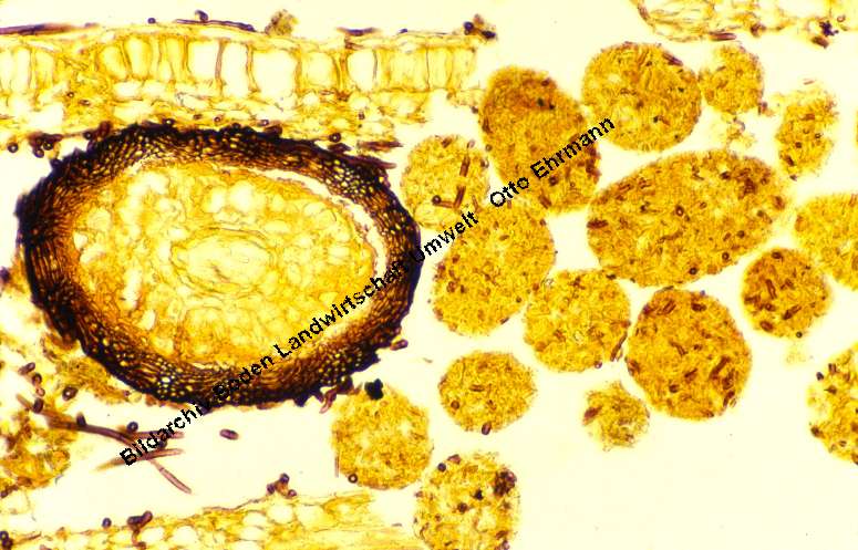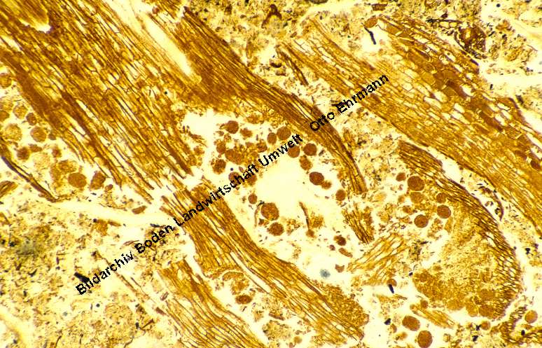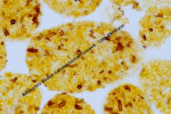 Laubstreu mit Hornmilbenlosung u Wurzeln mit Myk