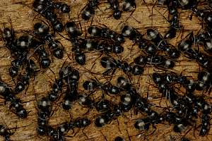 Ameisen an Holzpfosten