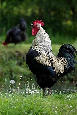 Deutscher Hahn beim Krähen... (Schwäbische Alb)  | ||||