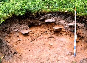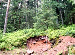 Ortsteintoepfe in Humus-Eisen-Podsol aus
