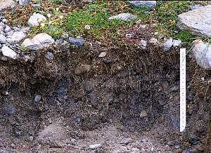 Bildauswahl zum Thema "Bodenprofile - Bodenentwicklung nach Gletscherrückzug"